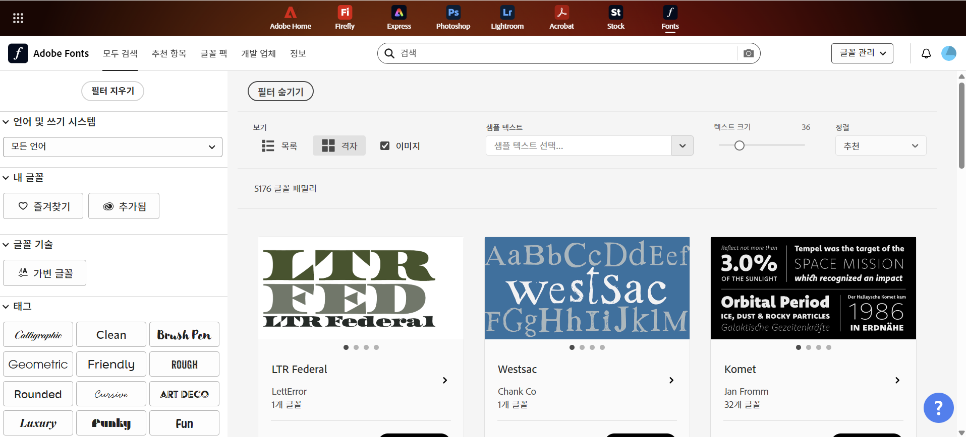 그럼 이렇게 어도비 폰트 홈페이지가 뜨는데