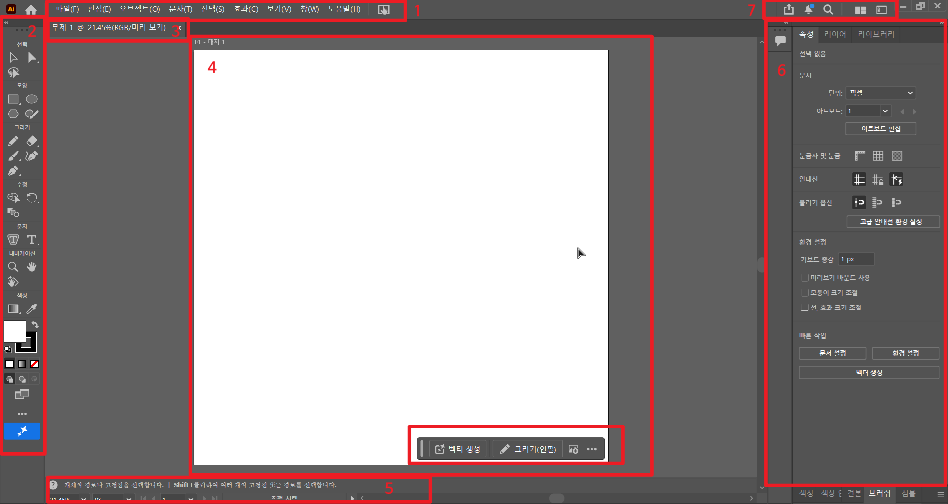 작업 시 주로 사용하는 속성 패널 들만 열어 두는 것이 작업하는데 편하다.