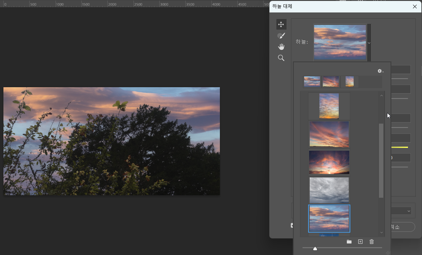 이렇게 어도비에서 예시로 들어주는 이미지로 하늘 대체를 할 수 있다. 꽤 편리하다!